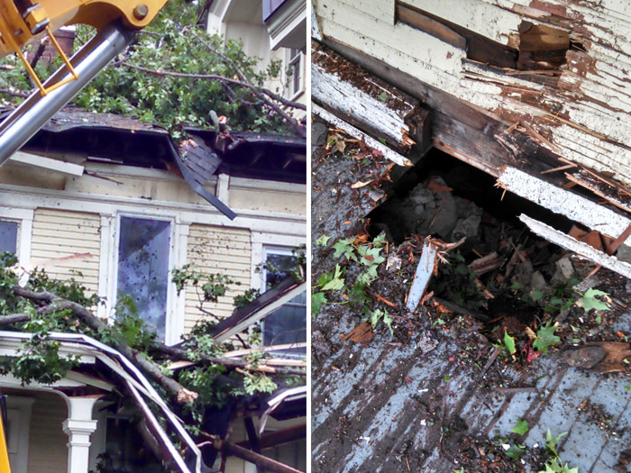 July 3, 2014 - A rock maple fell on both front and rear sections of this home.
